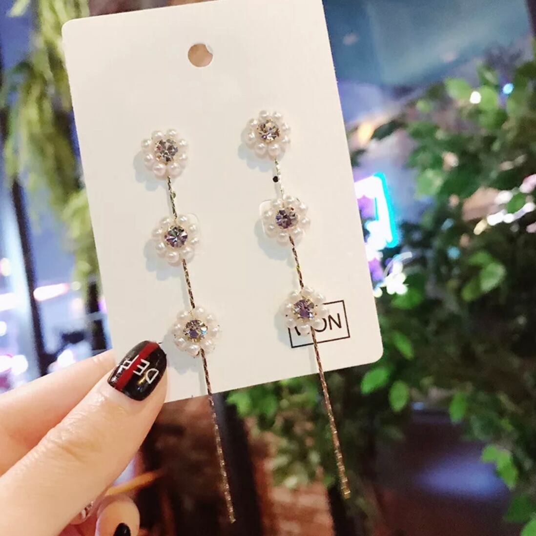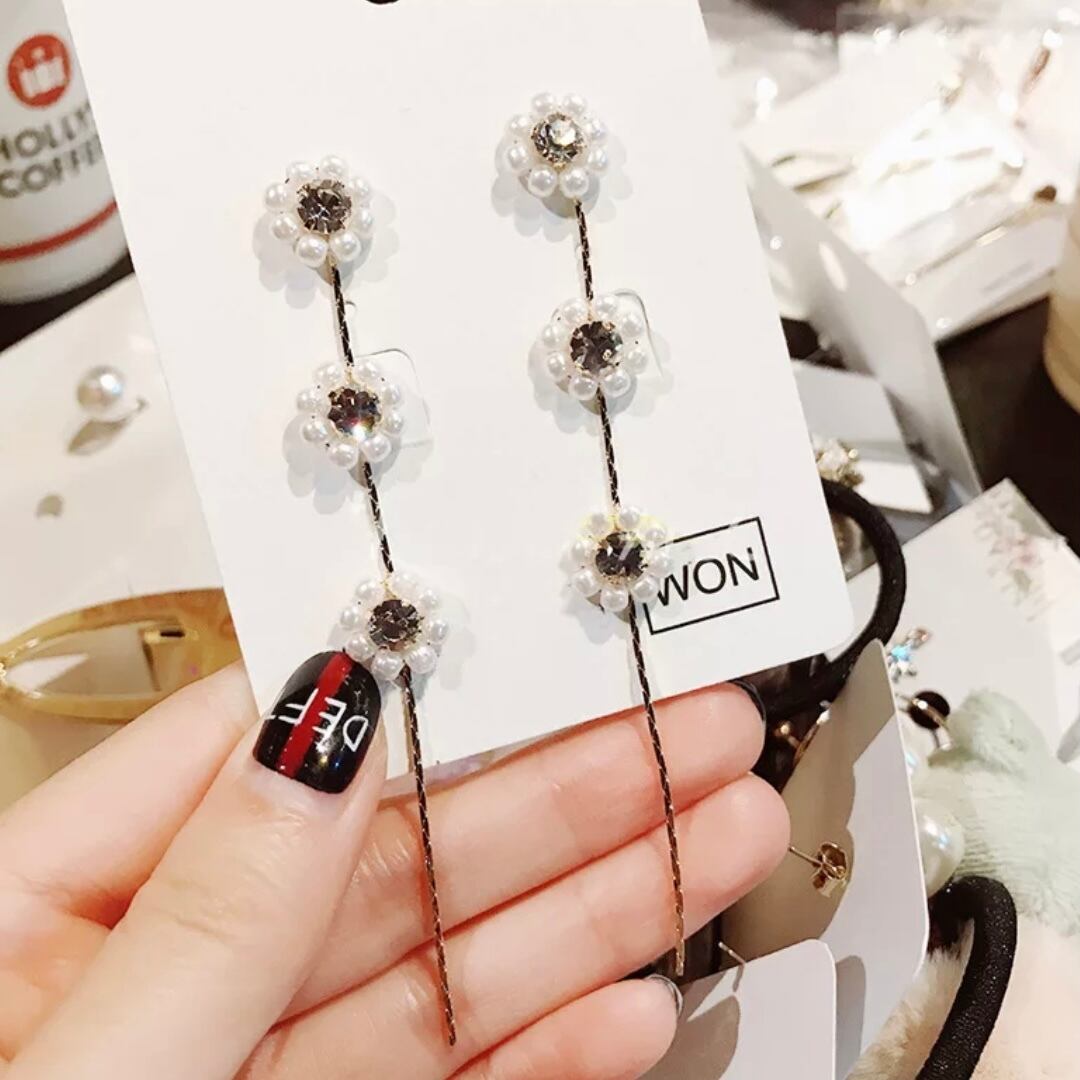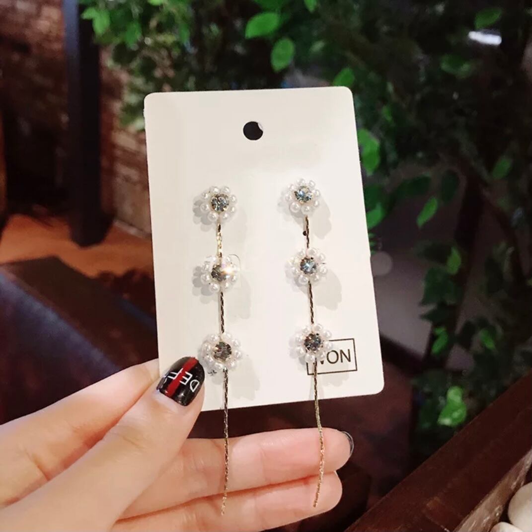 パールフラワードロップピアスです♡